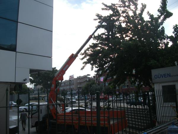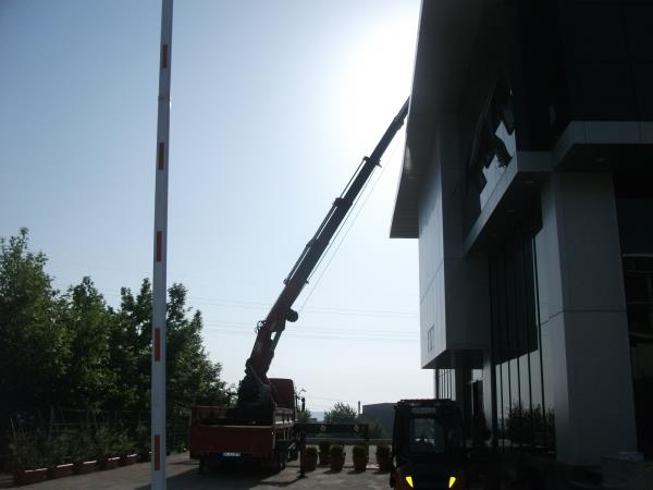 Vinç ile opet tabela montajı.