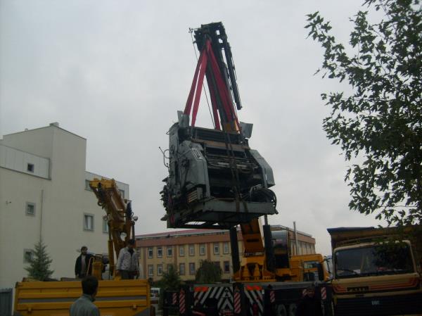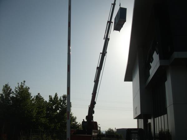 35 tonluk vinç ile 5 tonluk vinç i bina içine sokulması.