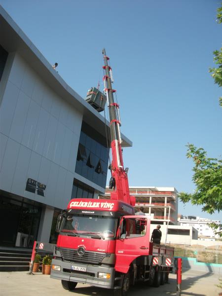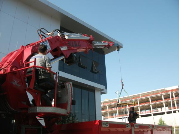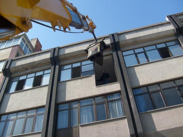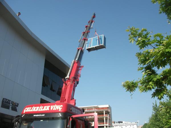 5 tonluk vinç in bina içine sokulması.