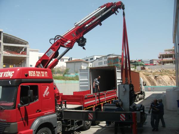 Mikserin vinç e yüklenmesi.