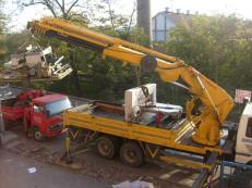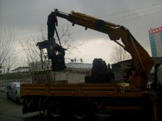 Vinçli kamyonla mikserin taşınması.