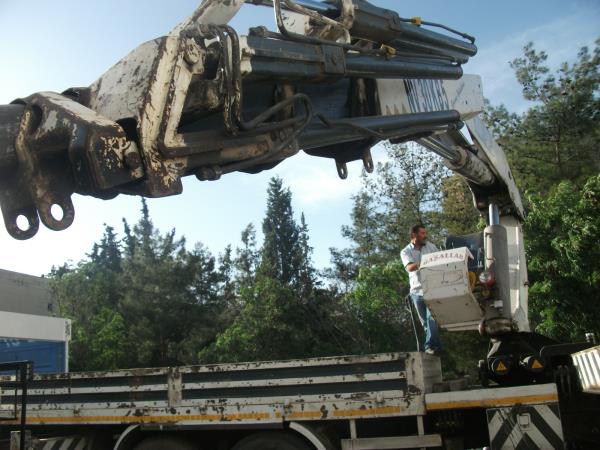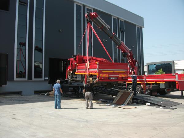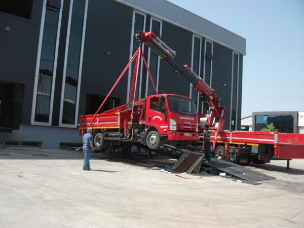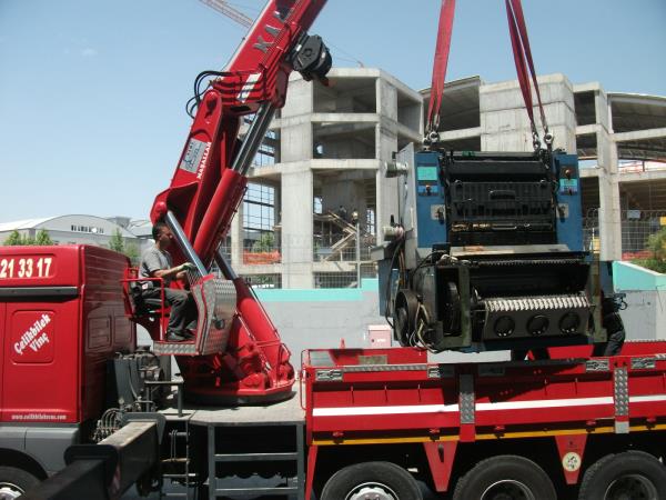 18 ton olan makinanın tırın üstünden atlatıması.