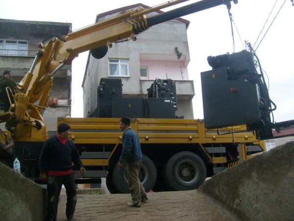 5 tonluk vinç ile aksa jenaratör indirilmesi.