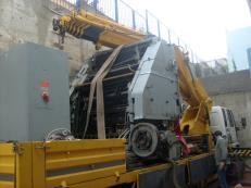 AKSA jeneratör vinç ile indirilmesi.