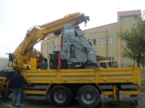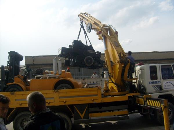 18 ton olan makinanın tırın üstünden atlatıması.
