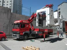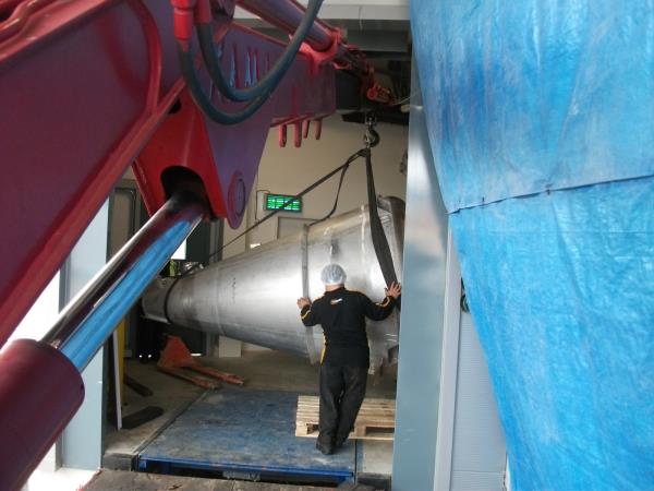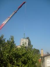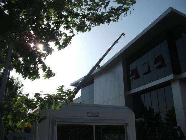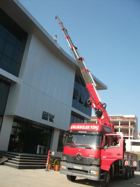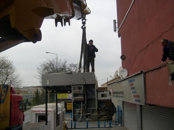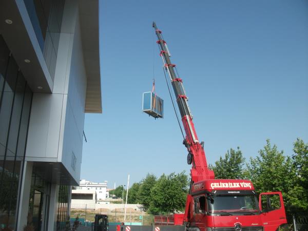 35 tonluk vinç ile 5 tonluk vinç i bina içine sokulması.