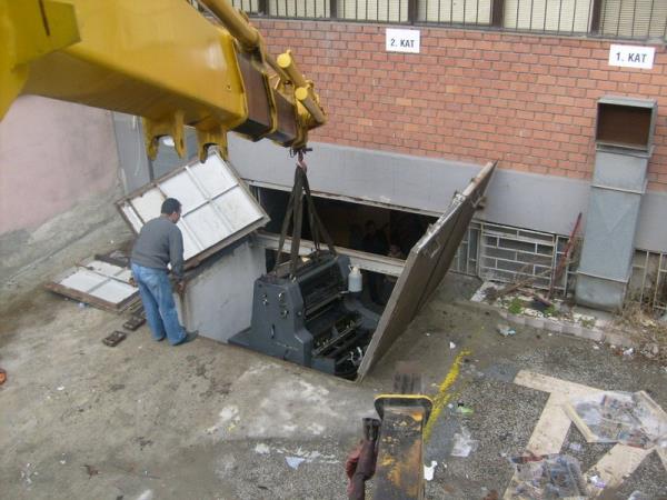 Cağoğlunda bodrum kattan makina çıkarılması.