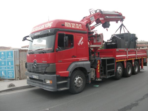 Vinçli kamyonla mikserin taşınması.