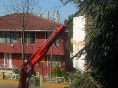 5 tonluk vinç in bina içine sokulması.